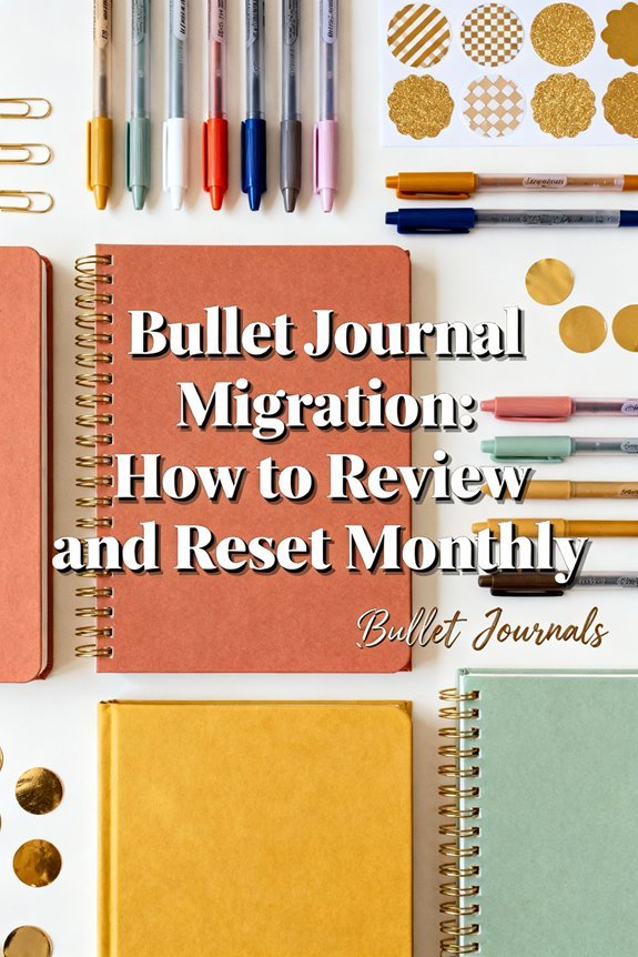 Bullet journal migration is your monthly reset process where you review each unfinished task and decide its fate. At month's end, evaluate every incomplete item using four categories: migrate forward (mark with >), schedule later (mark with <), complete now (mark with X), or eliminate entirely (strike through). This filtering system converts scattered tasks into intentional priorities while revealing productivity patterns and recurring obstacles. You'll spot what's working, what you're avoiding, and where your energy actually flows. The migration process below shows you exactly how to make these decisions systematically.