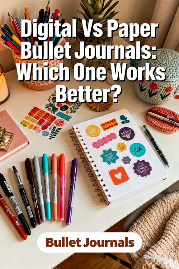 You'll make this choice based on your workflow optimization needs. Research shows that 42% of bullet journal users maintain their system for over two years when they match their method to their core productivity patterns. Track your engagement metrics for 30 days with each format—measure completion rates, retrieval speed, and consistency levels. Your data will reveal which system delivers measurable results. Don't default to trends; let your performance outcomes drive your decision framework.